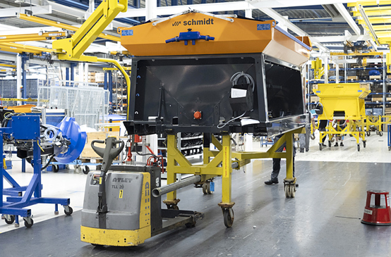 In de productiehal wordt het frame in elkaar gehecht en klaargezet voor het lasproces.