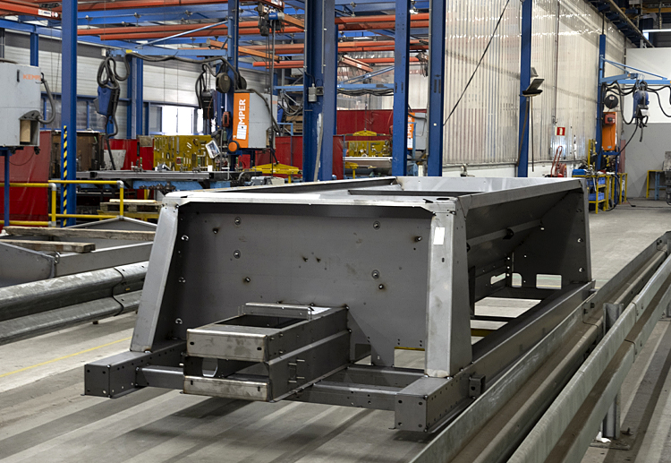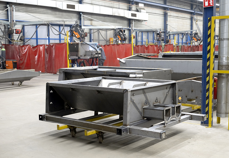 Na het lassen staat de onderbak klaar voor een beschermende coating tegen slijtage en weersinvloeden.